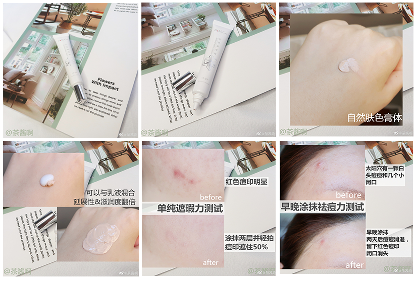 除了單純當(dāng)祛痘霜用之外,它特別適合在你有破皮痘痘但不得不上妝的時(shí)候用,在粉底之前蓋一